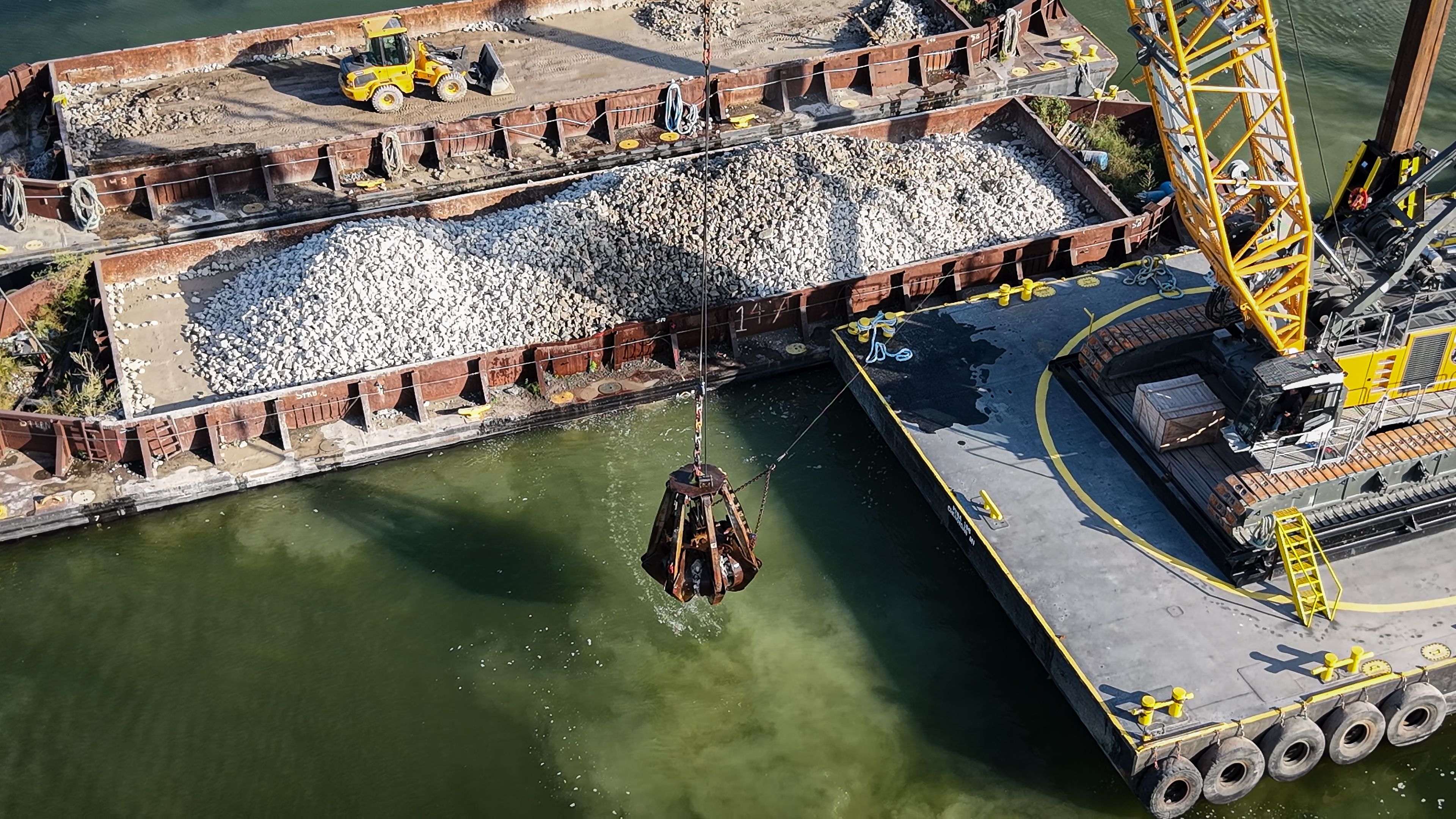 In September-October 2025, restoration efforts in inner Saginaw Bay moved from planning to action—or more accurately, from blueprint to barge. Just east of Channel Island near the mouth of the Saginaw River, crews deployed tons of limestone cobble onto the bay floor, constructing a new reef which reintroduces the rocky habitat that native fish like lake whitefish and walleye once relied on to spawn—habitat that had all but vanished owing to sedimentation in the bay.